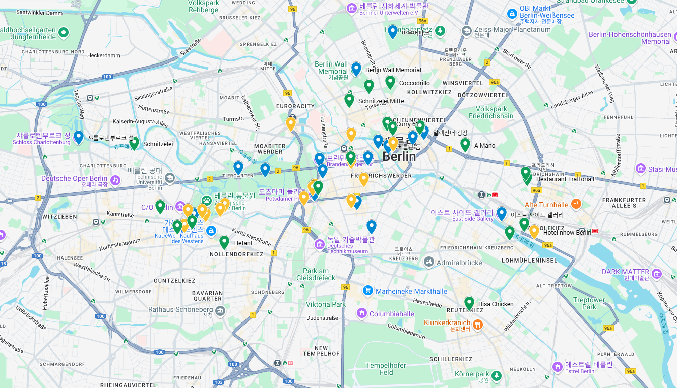 체크포인트 찰리: 동서 베를린 분단의 상징적인 장소로, 냉전 시대의 역사를 엿볼 수 있는 박물관과 기념물들이 있습니다.