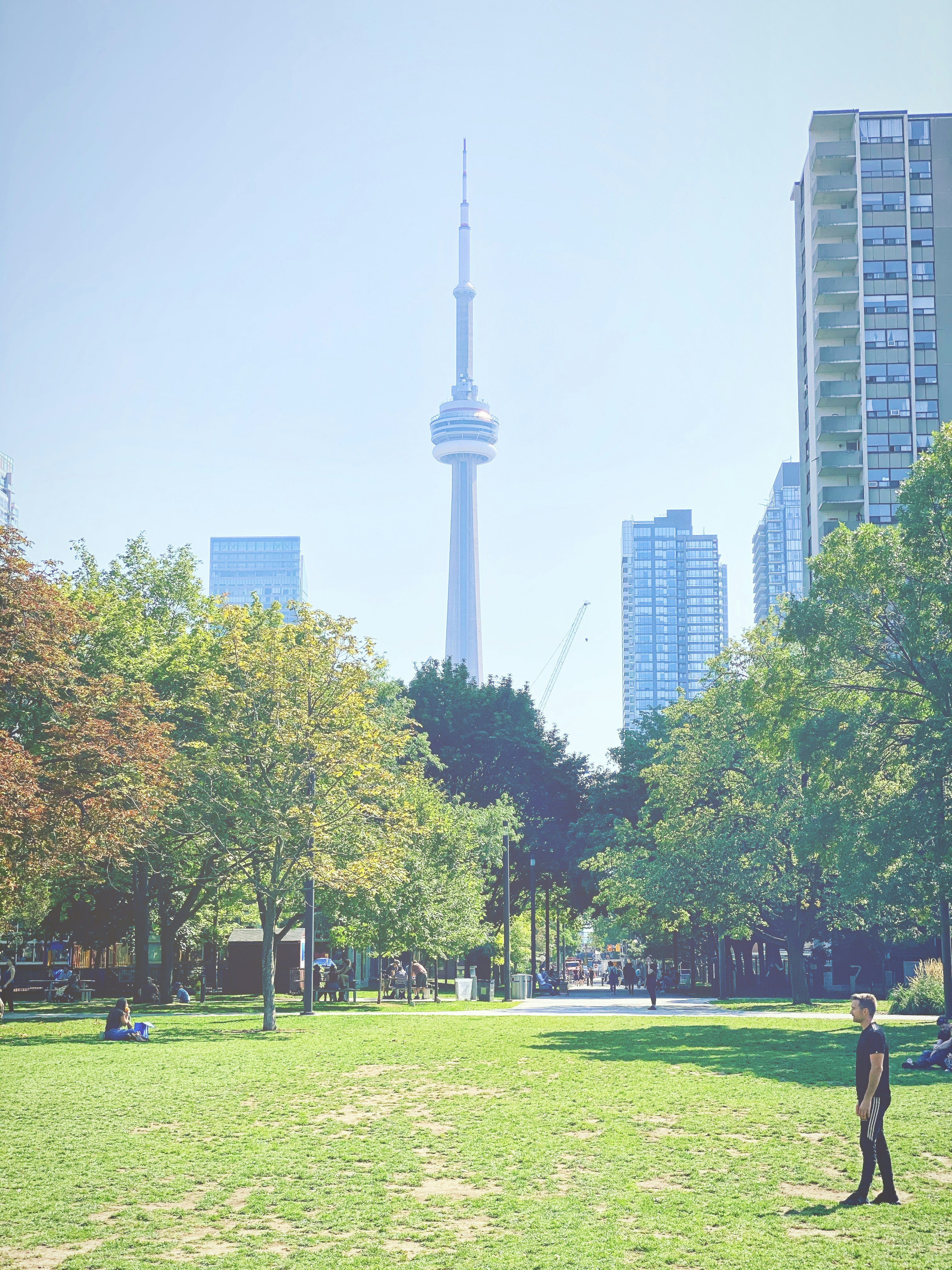CN 타워: HTO 공원에서 보이는 CN 타워는 토론토의 상징적인 랜드마크입니다.