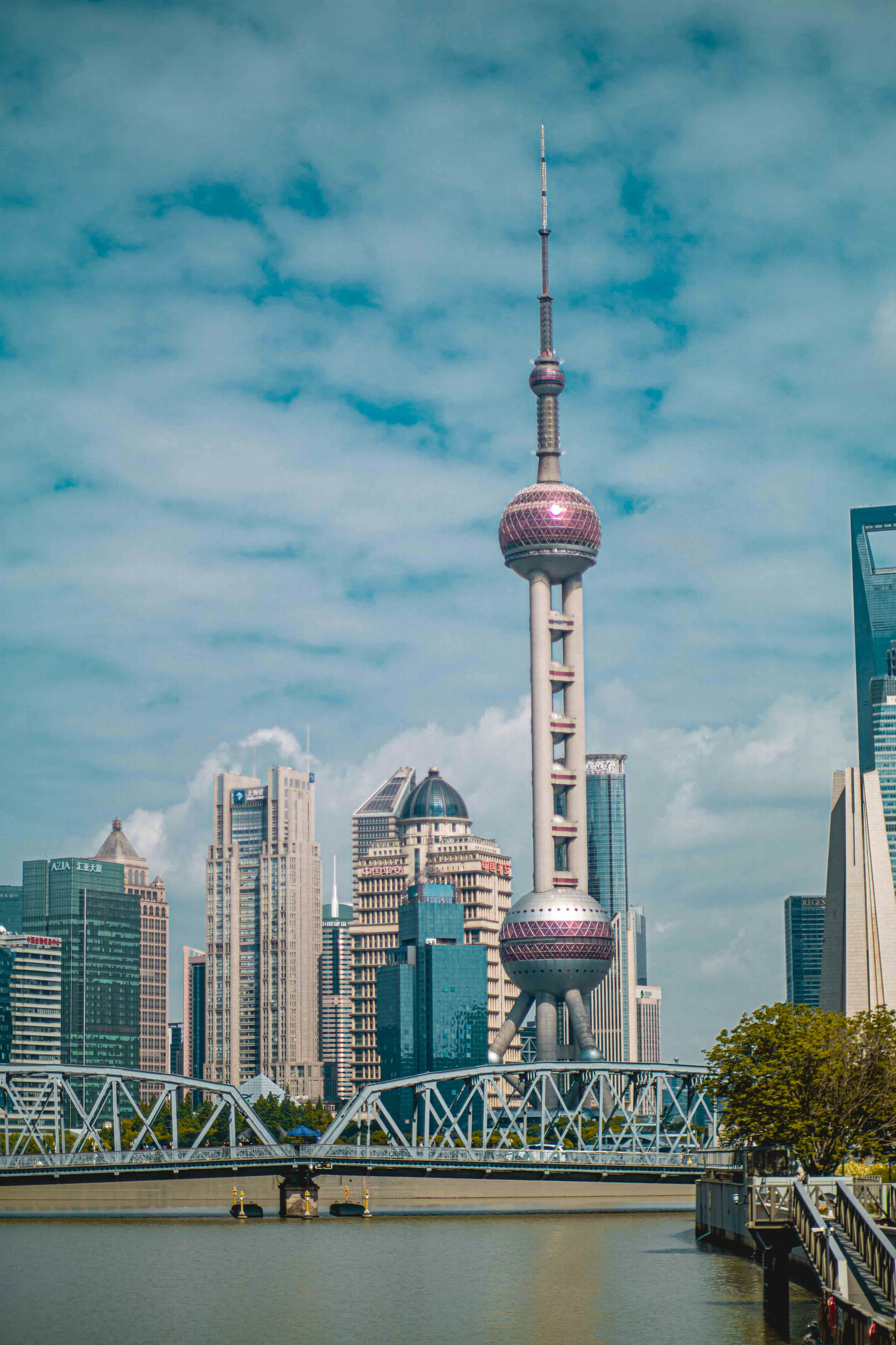 동방명주탑: 상하이 타워와 함께 푸둥의 스카이라인을 이루는 동방명주탑은 가까운 거리에 위치합니다.