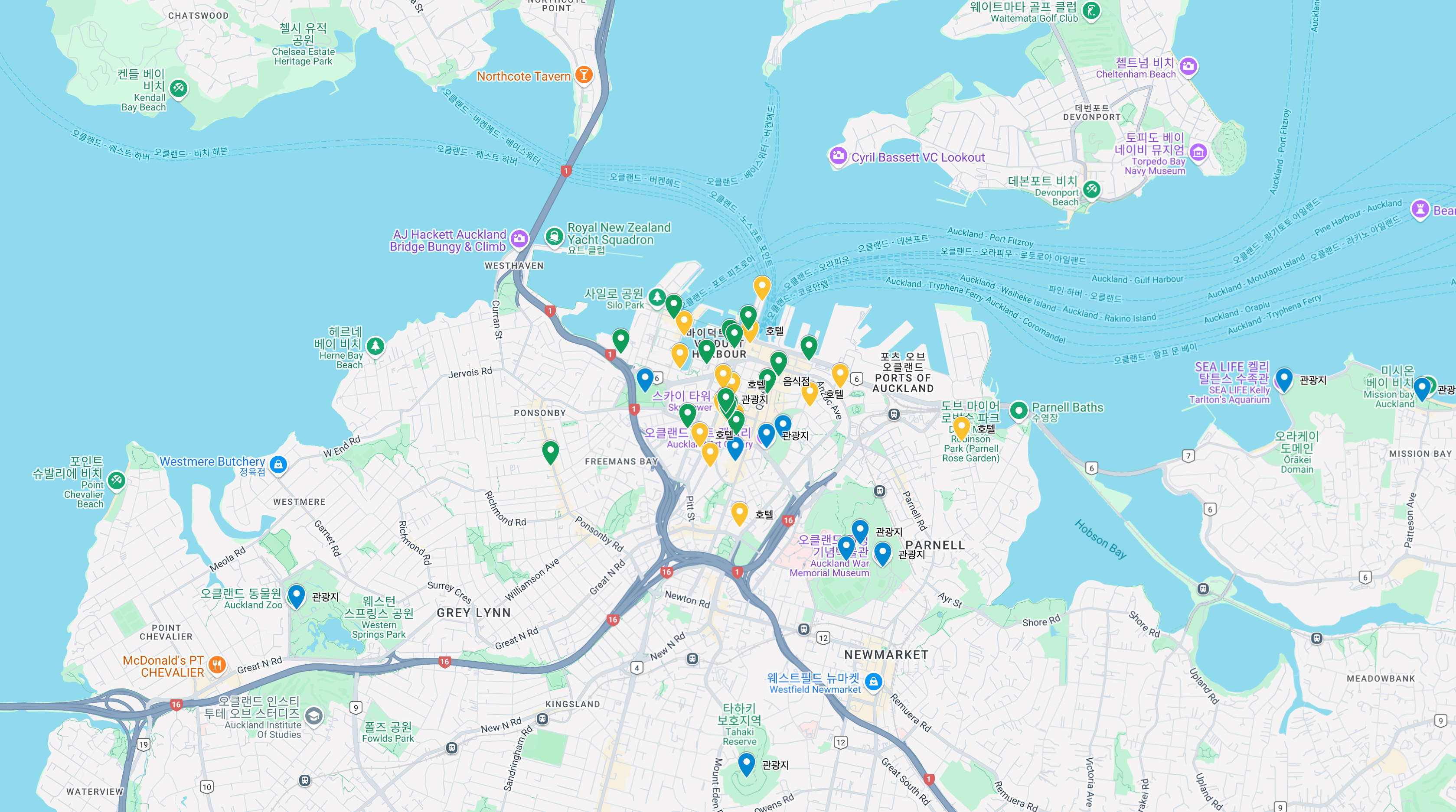 미션 베이: 오클랜드 시내에서 가까운 미션 베이는 인기 있는 해변가로, 다양한 레스토랑과 카페가 있습니다.