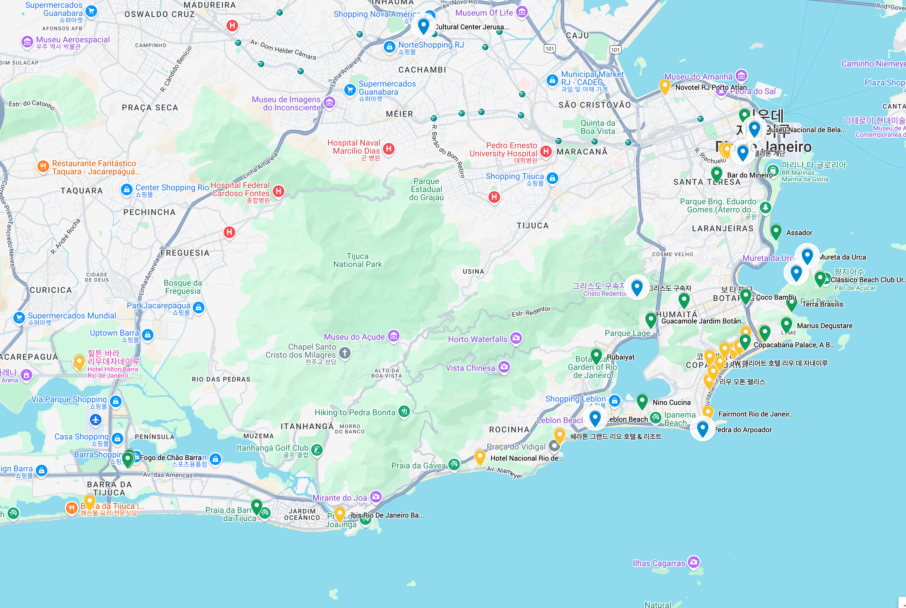 코파카바나 해변: 세계적으로 유명한 해변으로, 아름다운 백사장과 활기 넘치는 분위기를 즐길 수 있습니다.