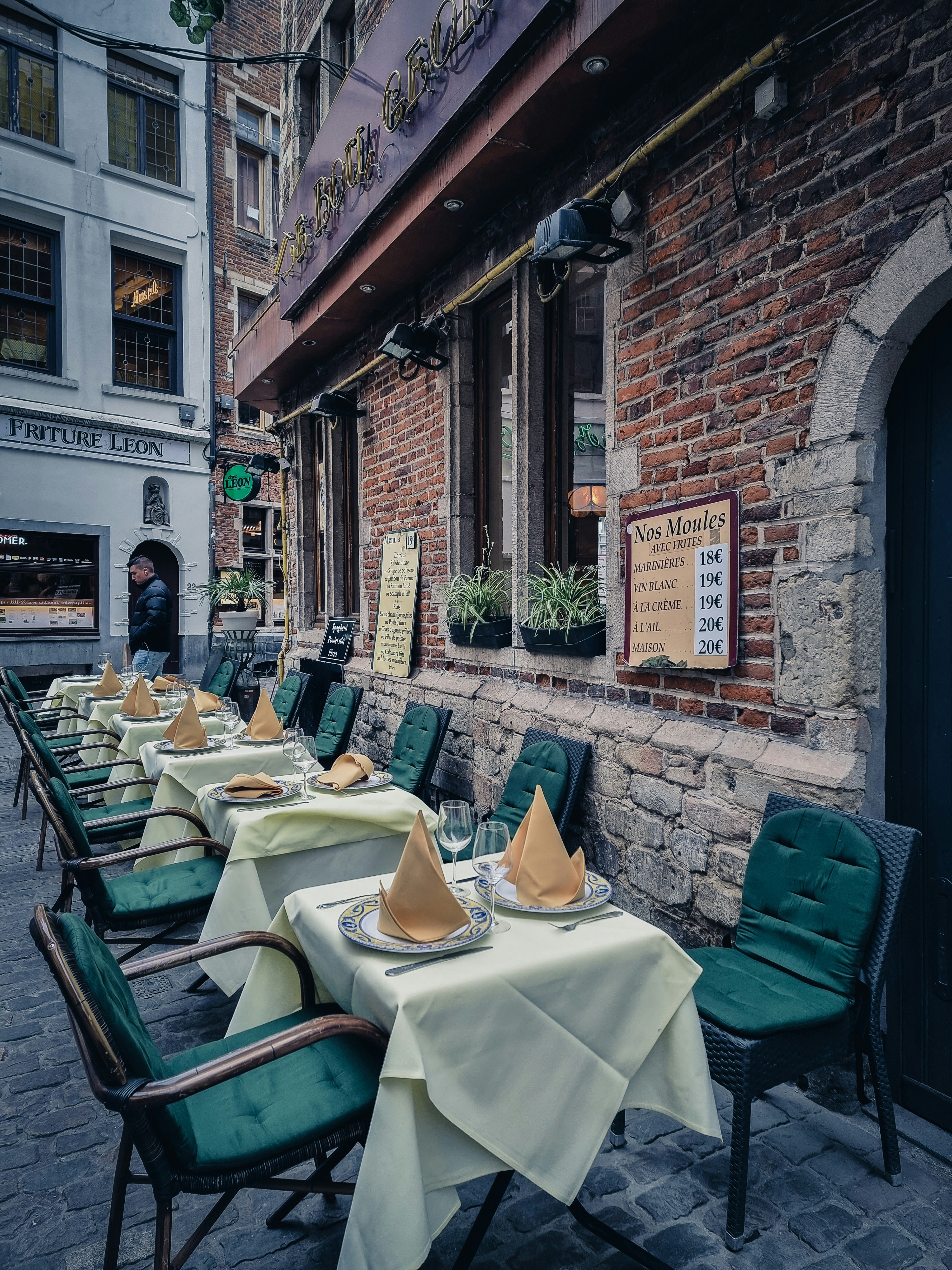 Aux Armes de Bruxelles는 1921년부터 운영되어 온 브뤼셀의 유서 깊은 레스토랑입니다. 전통적인 벨기에 요리를 맛볼 수 있으며, 특히 홍합 요리와 카르보나드 플라망드 (벨기에식 소고기 스튜)가 인기가 많습니다. 고풍스러운 분위기에서 벨기에의 역사와 맛을 동시에 느껴보세요.