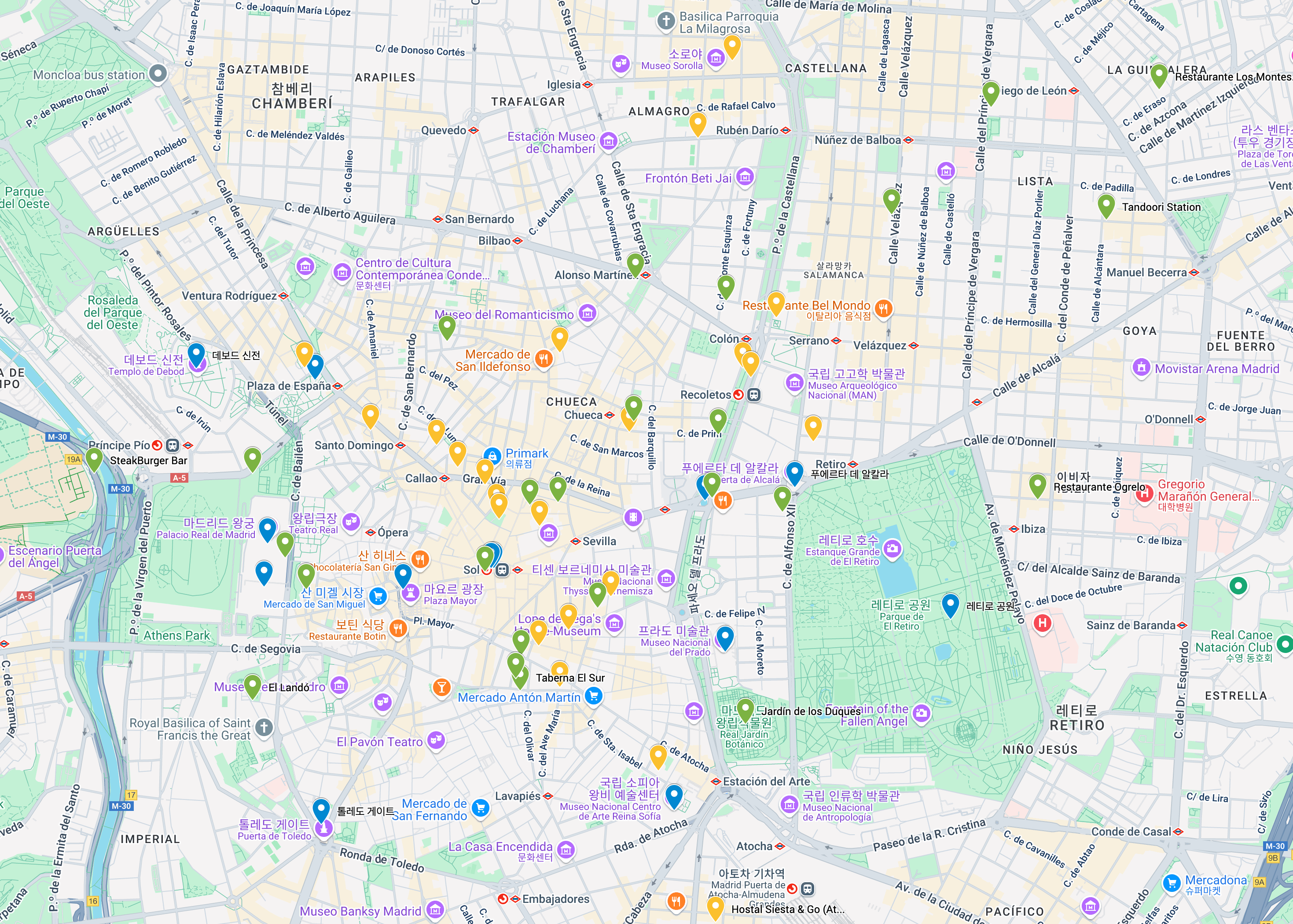 오늘 정리의 마지막 순서인 스페인 마드리드의 추천 식당모음입니다.