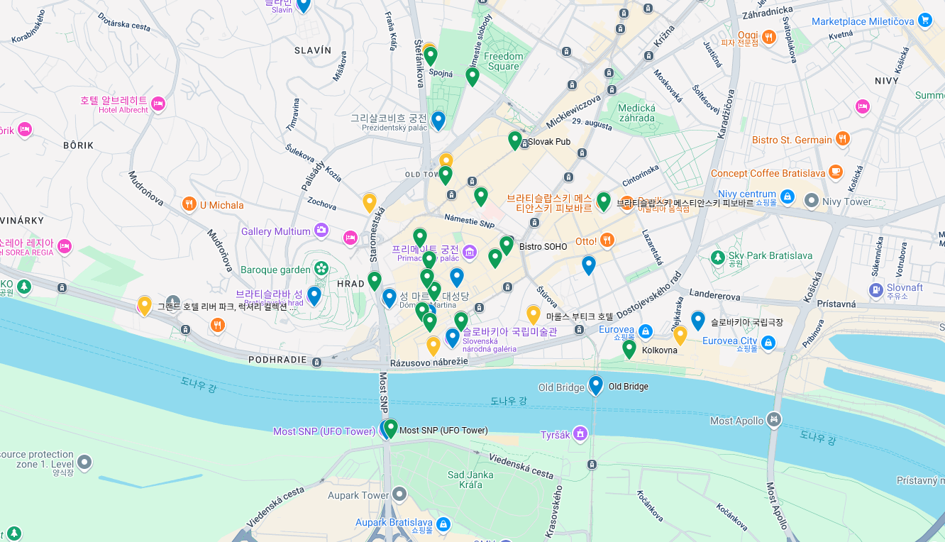 다뉴브 강변: 강변을 따라 산책하며 브라티슬라바의 아름다운 풍경을 즐길 수 있습니다.